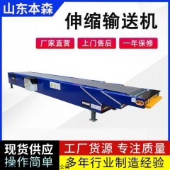 伸缩式皮带伸缩机新型伸缩式输送机是由挠性输送带作为物料承载件的连续输送设备,根据摩擦传动原理,由传动滚筒带动输送带,输送带回绕变向滚筒,并由伸缩联动机构拽动作往返动作,使输送带自由伸缩。伸缩胶带输送机可以在水平、斜坡正反方向伸缩输送邮件、块状物和成件物品;主要用于邮政、报刊、机械、化工、电器电子、食品加工等行业的装车、卸车及与其他输送设备配套;组成完整的自动化输送系统。其特点是在一定范围内可任意变距离输送,占地面积小、功能多、功耗小、噪声低、输送能力强。物件可直接进入车厢内任意位置,更大程度减轻劳动强度、减少货物流转损伤率,是企业降低产品成本的理想设备。伸缩式皮带伸缩机新型伸缩式输送机