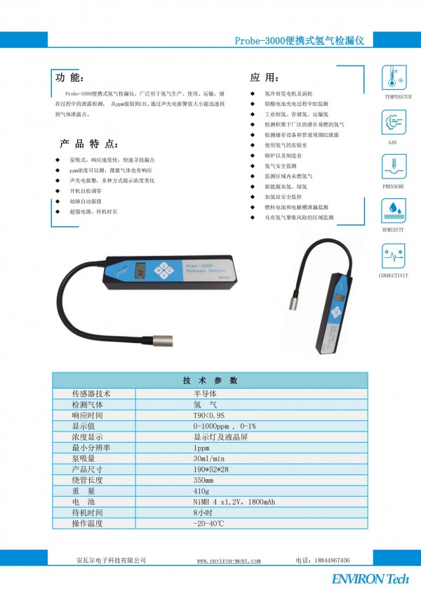 Prboe-3000 Hydrogen detector 安瓦尔自主研发国产氢气测漏仪]信息由会员[