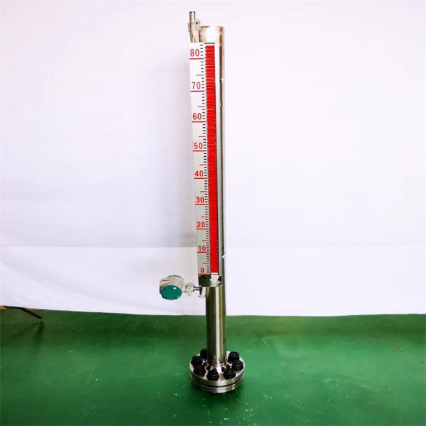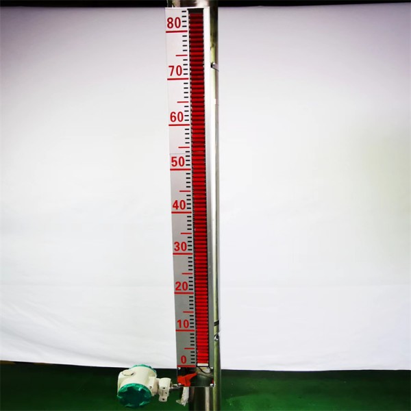 根据浮力原理和磁性耦合作用而成。当被测容器中的液位升降时,液位计本体管中的磁性浮子也随之升降,浮子内的磁钢通过磁耦合传递到磁翻柱指示器,驱动红、白翻柱 翻转180°,当液位上升时翻柱由白色转变为红色,当液位下降时 翻柱由红色转变为白色,指示器的红白交界处为容器内部液位的实际高度,从而实现液位清晰的指示。