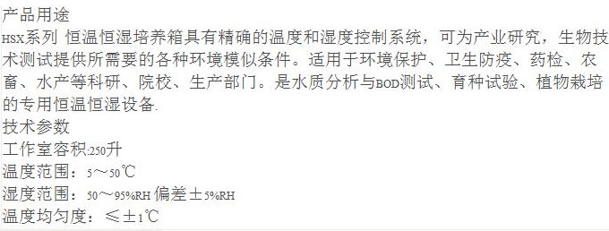 HSX-250 恒温恒湿培养箱]信息由会员[