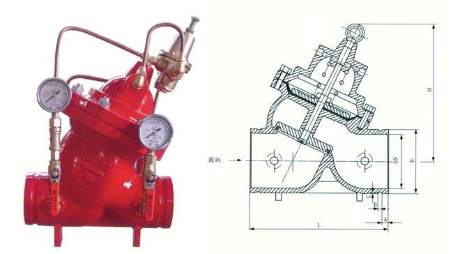 该阀用于生活供水和消防供水并联供水系统中,正常情况供生活用水,当火灾发生或消防用水时,阀门自动关闭生活用水,确保足够的消防用水。当消防停止用水时压力减少,阀门自动恢复生活用水,该阀使用系统无须另设专门的消防单独贡税管道,大大地节省可工程建设成本和日常的用水量。该阀控制灵敏、安全可靠、调试简单、使用寿命长。
