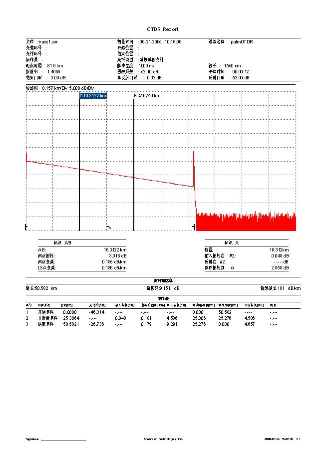 (5)盲区测量条件:对A/N型,反射事件在2.1Km处,反射强度<-35dB,用30ns脉宽进行测量;对B/N、C/N型,反射事件在0.6Km处,反射强度<-45dB,事件盲区用10ns脉宽进行测量,衰减盲区用30ns脉宽进行测量;