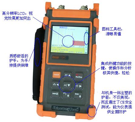其与传统OTDR相比,尺寸更加小巧,操作更为简洁,独特的热键功能使事件的浏览和分析更加快捷;功能齐全,满足单模 (1310nm/1550nm)、多模(850/1300nm)光纤测试应用需求,支持平均/实时双测量模式;其多功能背包亦充分考虑到了野外作业和实验室测试的操作方便,可充分满足不同用户和各种现场测试需求,使其成为目前发展迅速的农话网、城域网和FTTx光纤施工、认证、例检、抢修和维护中的工具。