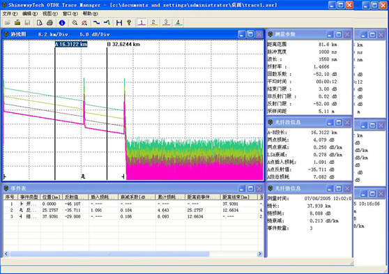 (6)盲区测量条件:反射事件在1Km处,反射强度<-32dB,用12ns脉宽进行测量。