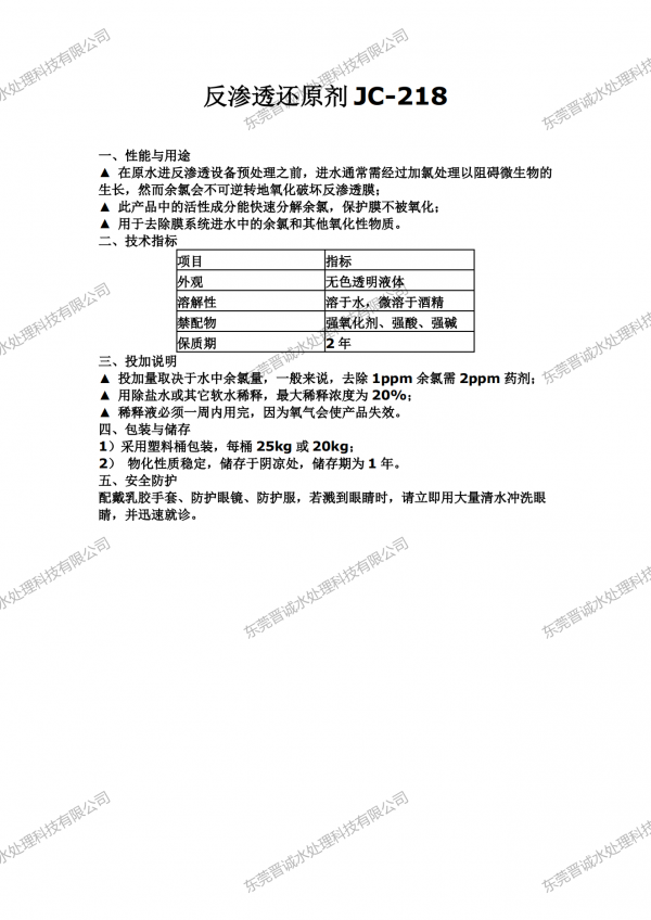 免责声明:以上所展示的[JC-218 惠州水处理反渗透还原剂,高效反渗透还原剂]信息由会员[东莞晋诚水处理科技有限公司]自行提供,内容的真实性、准确性和合法性由发布会员负责。