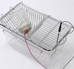 动物在居住笼环境中测试,附带一个特制的导电地板格子和一个连接电击的饮水瓶。