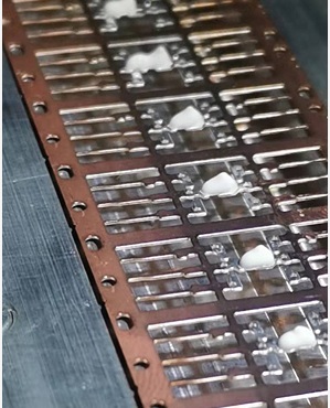 反光率高,跟环氧塑封料粘接好,有一定流淌性,能够将芯片全部裹住