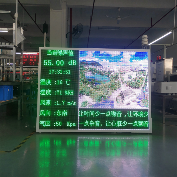 7\显示屏外观可选用双立柱、仿古瓦、曲线屏等,多种选择适用于各种场所;超标变色(可选配):LED屏幕显示具备超标变色报警显示功能;超标广播:噪声数据超标,即时广播提醒。