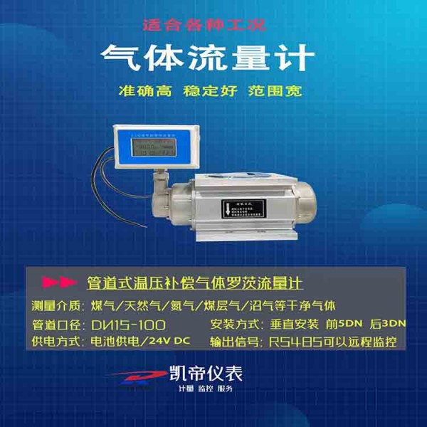 罗茨气体流量计精度高、重复性好、压力损失小、抗振性能好集微处理器、流量传感器、***温度、压力传感器于一体,直接测量被测气体的流量、温度和压力,并自动进行流量跟踪补偿和压缩因子修正运算;免维护温压补偿型防爆型寿命长