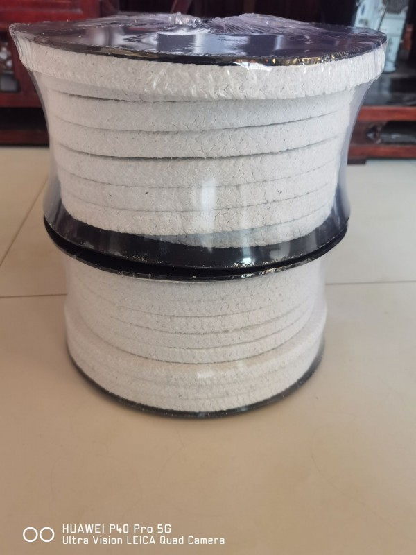 石棉浸四氟盘根由温石棉线编织经浸渍PTFE乳液或石墨乳编织而成,具有更优异的密封 效果,常用于泵、阀、法兰等。