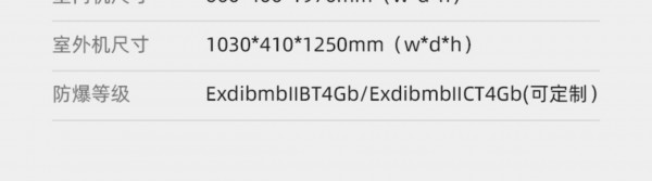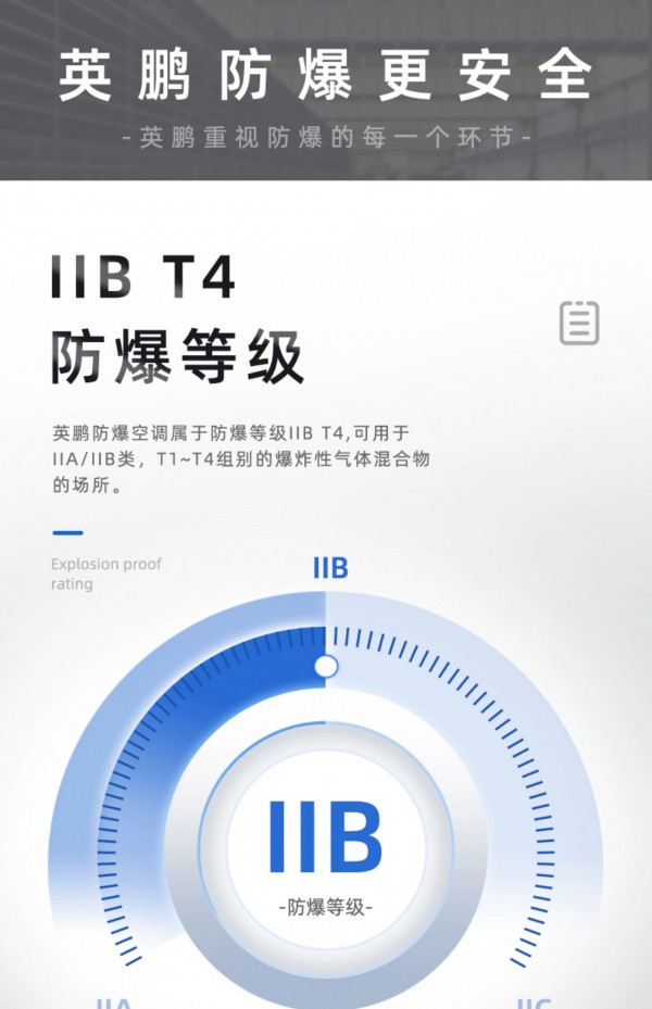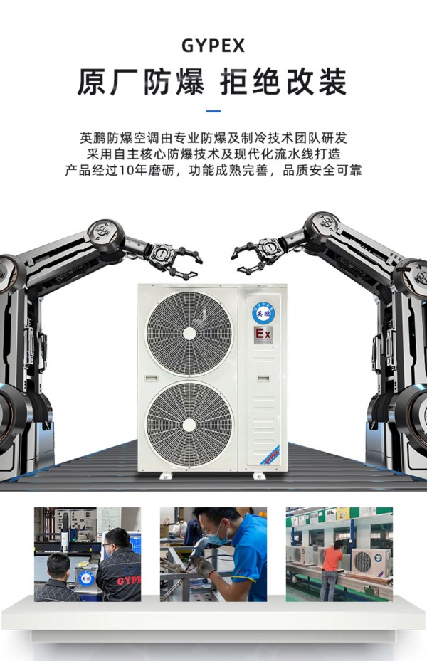 拥有IIB T4防爆等级,内外机钣金外壳、内置式防爆电气控制柜、更安全防爆制冷剂、高性能防爆压缩机