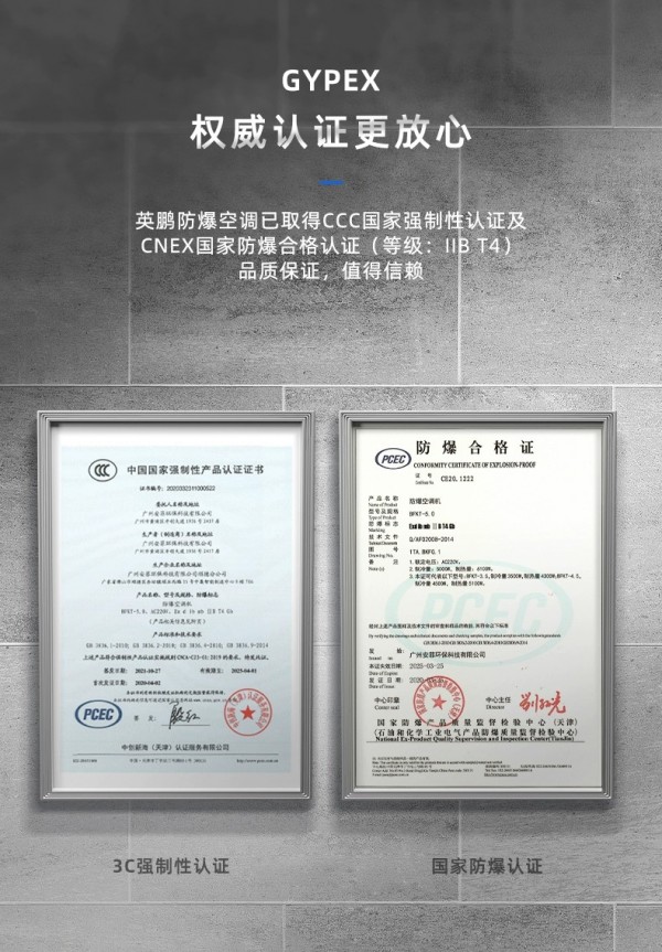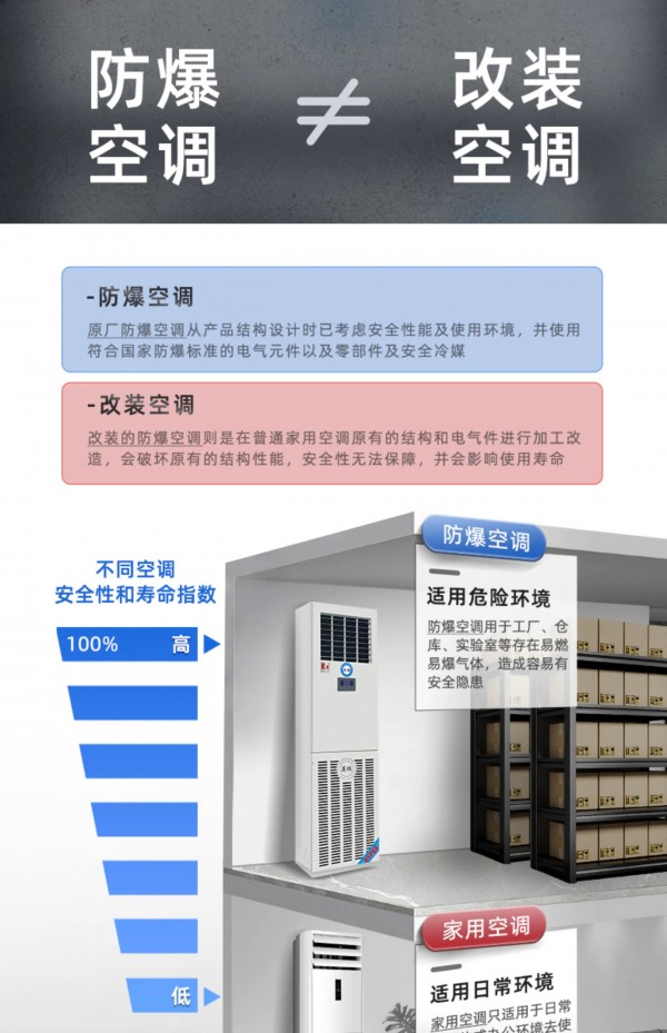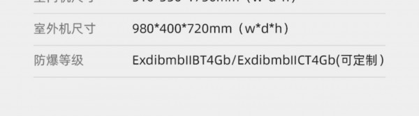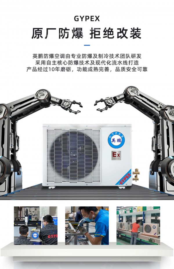 拥有IIB T4防爆等级,内外机钣金外壳、内置式防爆电气控制柜、更安全防爆制冷剂、高性能防爆压缩机