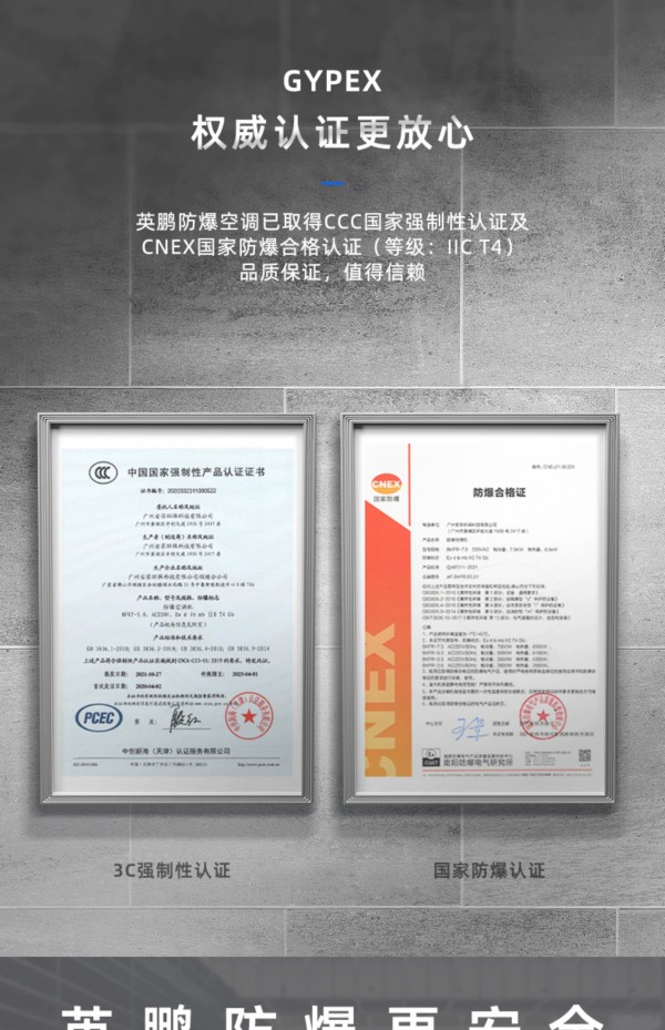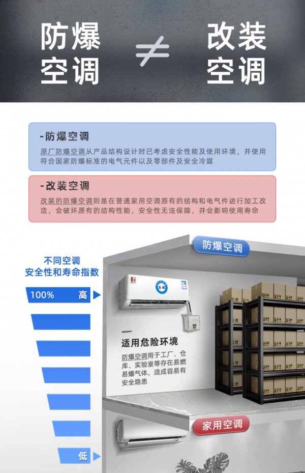 拥有IIB T4防爆等级,内外机钣金外壳、内置式防爆电气控制柜、更安全防爆制冷剂、高性能防爆压缩机