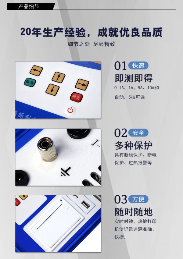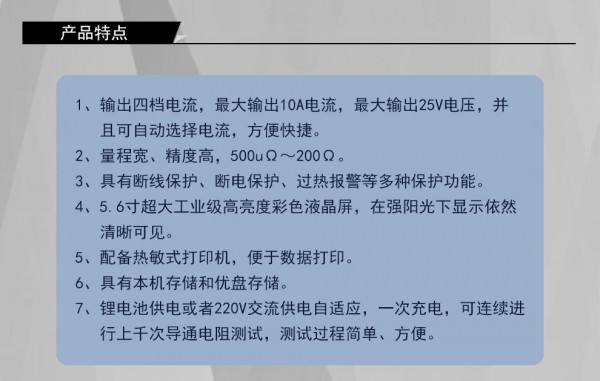 ◆锂电池供电或者220V交流供电自适应,一次充电,可连续进行上千次导通电阻测试,