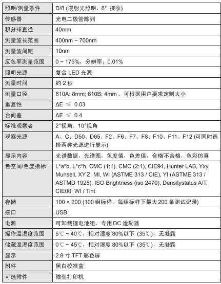 1、 仪器采用国际通用的D/8(积分球漫射照明,8°观察角)SCI/SCE兼容照明观察条件