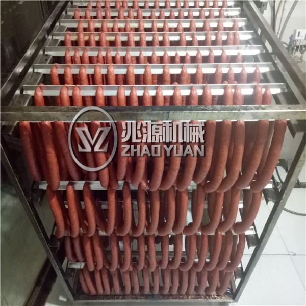 兆源机械的黑龙江红肠熏蒸一体炉,50型红肠烟熏炉,香肠全套加工设备具有蒸煮、干燥、烘烤、烟熏、上色等功能,有着非常好的节能效果,设备厂家直销设备都是采用的九键式电脑版的设计,可以单独设备烘干烟熏的参数,而且有记忆保存的功能,同样的产品只需要设置一次参数就可以了,后面在使用的时候直接打开开关就可以了,就不