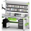 2、实训桌桌面采用25mm麻灰色高密度层压板封边特制,有效提高绝缘等级;实验桌底部装有至少4个导向轮,方便实训台架移动;