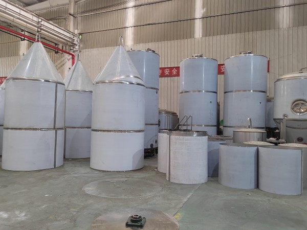 4、啤酒发酵设备:发酵池发酵罐、发酵温度控制设备、酵母培养扩培罐、洗涤杀菌设备、热水碱水备制设备等。