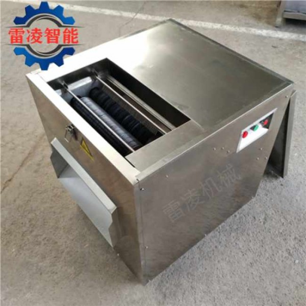 1.牛肉切条机:可以将块状的牛肉切成牛肉条,放料的时候请注意肉的横向和竖向,避免方向不对将肉条切散。