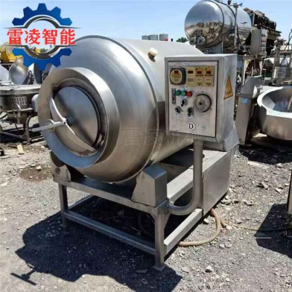 2.牛肉腌制机:腌制机是在真空状态下,利用物理冲击的原理,让肉在滚筒内上下翻动,相互撞击、摔打、达到腌渍的作用,可以使肉均匀的吸收腌渍,提高肉的结着力及产品的弹性;本机具有肺呼吸功能,让产品在滚筒内做膨胀、缩小的往复运动,改善了肉组织的结构,提高了切面效果,增加了出品率。可以增强保水性,改善产品的内部结构。整机采用不锈钢制造,结构紧凑,滚筒两端均采用旋压式封帽结构,最大的增加滚筒内的摔打空间,使滚揉产品的效果均匀,噪音小,性能可靠,操作简便,使用效率更高。
