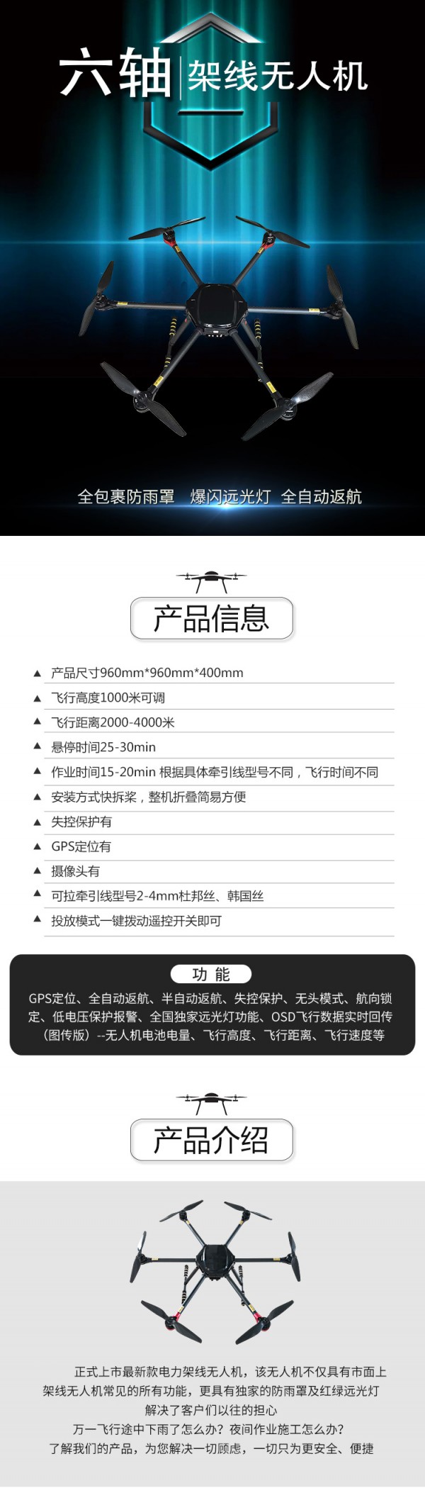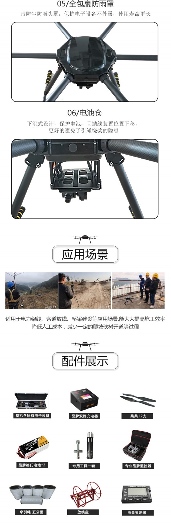 ktm-T960 大载重六轴无人机电力架线套机拉线运输抛线索道飞线碳纤维机身]信息由会员[