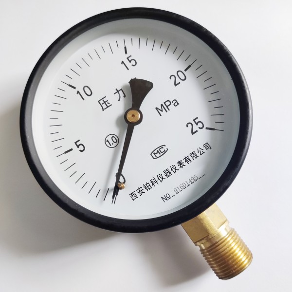西安铂科仪表厂1.0级普通压力表测量中常用的仪表,内部的弹性敏感元件具有很高的机械强度,由于生产方便、安装简单读数方便等特性,使得一般压力表得到越来越广泛的应用。适用测量无爆炸,不结晶,不凝固,对铜和铜合金无腐蚀作用的液体、气体或蒸汽的压力和真空。