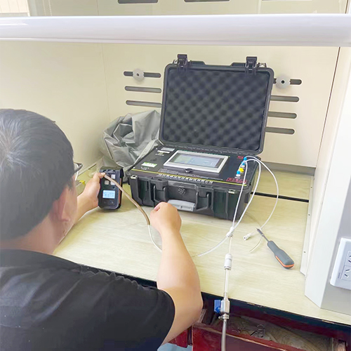 启动安全柜,预热30分钟达到稳定状态后。采集柜内空气并检测。重复检测三次。
