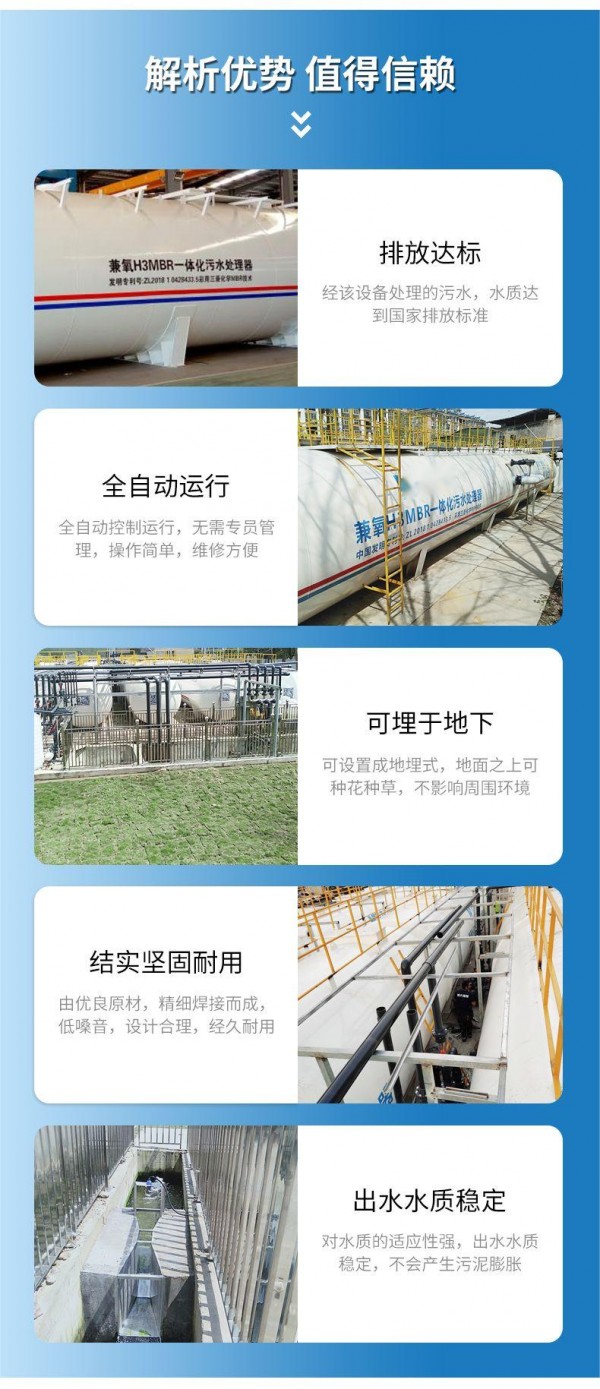 兼氧H3MBR一体化污水处理设备是一种集合了兼氧生物处理和MBR(膜生物反应器)技术的污水处理设备。下面是对其工艺进行介绍: