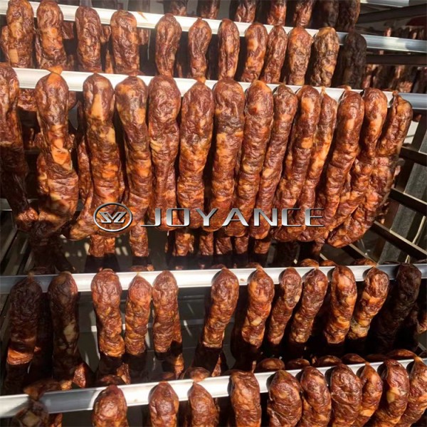 4、上色:厂家直销三文鱼冷熏炉,红肠蒸煮烟熏一体机器,全自动鱼类熏制设备结合烘干与烟熏2种功能,通过有的风道循环系统给不同产品上不同色泽。