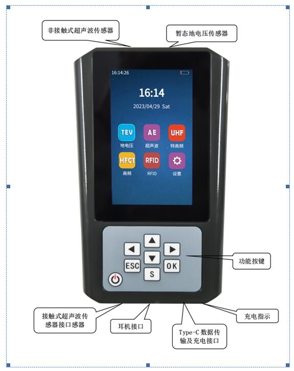 本仪器为多功能型带电检测手持仪器,其基于地电压、超声波、特高频、高频电流检测方法,测试电力设备的局部放电情况,提供局部放电幅、PRPS、PRPD、连续、飞行、脉冲、相位、波形等图谱,可以较好的评估电力设备局部放电情况。该带电检测仪能够适用于变压器、电抗器、环网柜、开关柜、高压电缆、架空线路等电力设备的带电局放检测。
