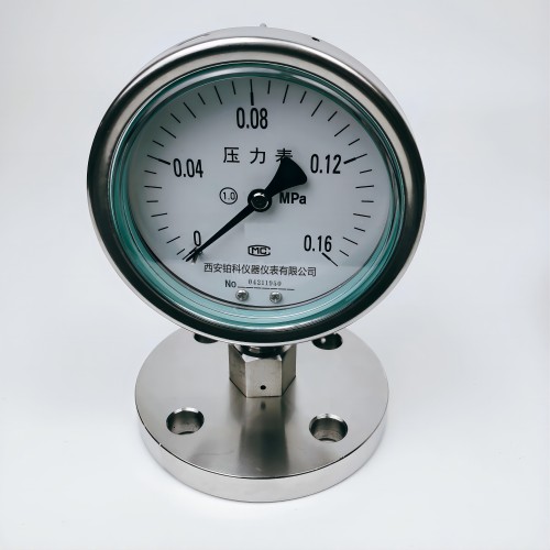 由隔膜隔离器与通用型压力仪表组成一个系统的隔膜表。隔膜压力表与设备连接方式主要有螺纹连接和法兰连接及卫生卡箍式等。表适用于测量强腐蚀高温、高粘度、易结晶、易凝固、有固体浮游物的介质压力以及必须避免测量介质直接进入通用型压力仪表和防止沉淀物聚且易清洗的场合。
