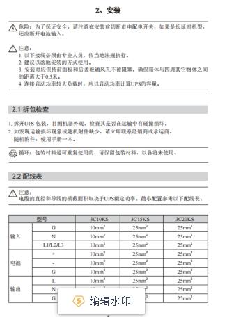 1. 如果长时间放置不使用,必须将UPS(不带电池)存放在干燥的环境中,存贮温度范围: -25-55℃。UPS开机之前,必须先让环境温度回暖至0℃以上,并维持2小时以上。