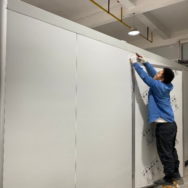 老化房四周采用保温平整状库板连接,库板顶部及底部采用喷塑槽铝固定