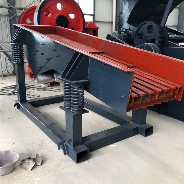 振动给料机又称振动喂料机,是指可把块状、颗粒状物料从贮料仓中均匀、定时、连续地给到受料装置中去的一种设备。它是通过连杆及偏心轴传动进行工作的。由于该机械式给料机的设计新颖,所以其一问世就引起了广泛的关注,再加上它能把劳动者从繁重的工作中解放出来,大大地提高了生产率,因此,在矿井生产中,特别是煤矿井下得到了广泛的应用.在砂石生产线中可为破碎机械连续均匀地喂料,并对物料进行粗筛分,广泛用于冶金、煤矿、选矿、建材、化工、磨料等行业的破碎、筛分联合设备中。振动给料机结构简单,喂料均匀,连续性能好,激振力可调;随时改变和控制流量,操作方便;偏心块为激振源,噪音低,耗电少,调节性能好,无冲料现象;若采用封闭式机身可防止粉尘污染 振动平稳、工作可靠、寿命长;可以调节激振力,可随时改变和控制流量,调节方便稳定;振动电机为激振源,噪声低、耗电小、调节性能好,无冲料现象。
