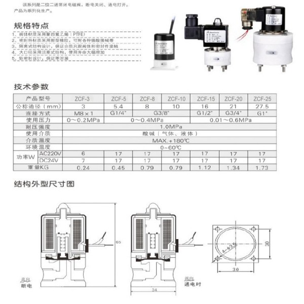 一、聚四氟乙烯电磁阀技术参数