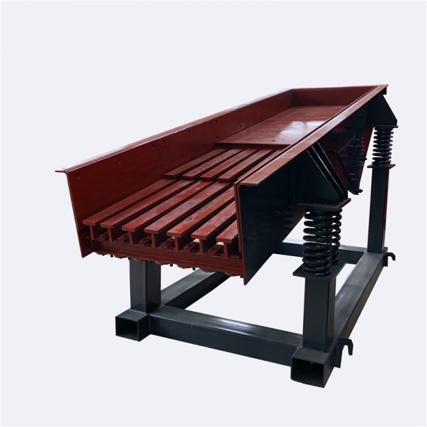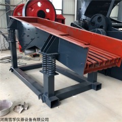 石头粗筛给矿机 棒条喂料机 振动给料机振动给料机又称振动喂料机,是指可把块状、颗粒状物料从贮料仓中均匀、定时、连续地给到受料装置中去的一种设备。在砂石生产线中可为破碎机械连续均匀地喂料,并对物料进行粗筛分,广泛用于冶金、煤矿、选矿、建材、化工、磨料等行业的破碎、筛分联合设备中。