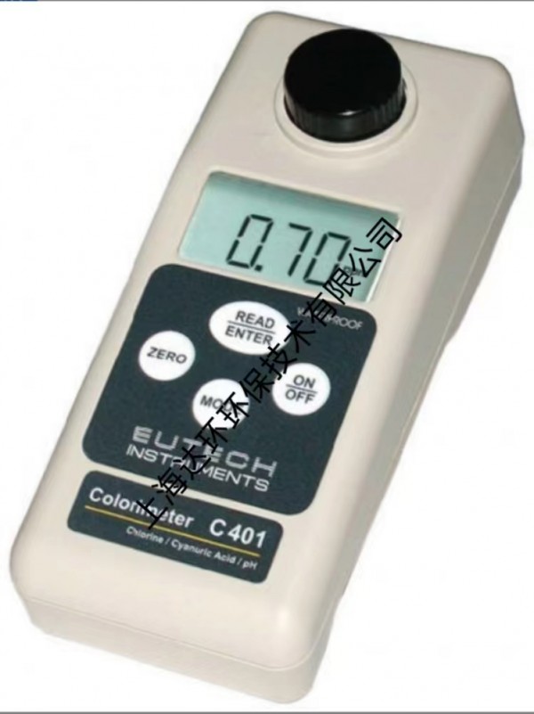 Eutech优特 C401 便携式余氯/总氯测量仪可测量余氯 / 总氯(0 - 6.0 ppm)/ 氰尿酸 / pHC401优特便携式余氯/总氯测量仪防水型比色计基于微处理器设计,可快速、准确测量余氯、总氯、氰尿酸和pH值。仪器具有大屏幕液晶显示和自诊断信息提示功能。仪器附带试剂和样品瓶,置于便携箱方便室内外使用。适用于游泳池、饮用水、卫