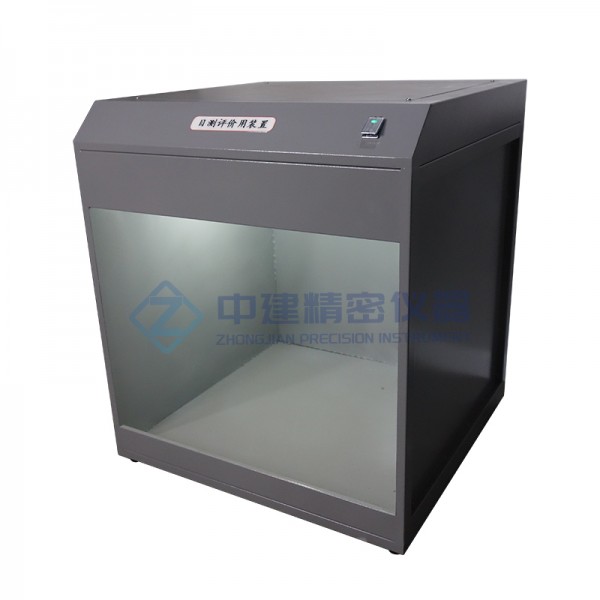 目测评价装置是根据GB/T 3810.7-2016《陶瓷砖试验方法 第7部分:有釉砖表面耐磨性的测定》生产,采用钢板焊接,表面无反光静电喷涂处理,装有两支色温为6000-6500K的荧光灯,开机就可检测,简单实用。