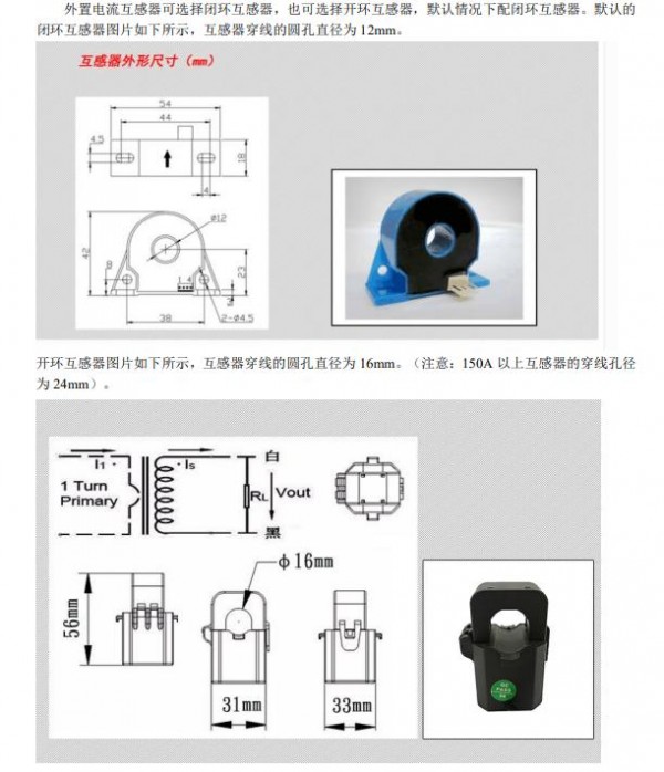 外置电流互感器,见1.6外置互感器说明 |