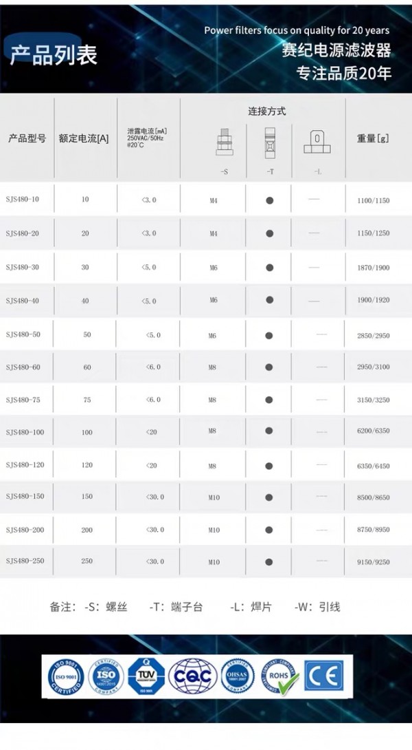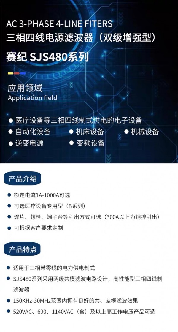 --SJS480系列采用两级共模滤波电路设计,高性能三相四线制滤波器