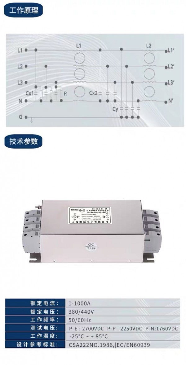 二、上海赛纪SJS480三相四线双级emi交流变频器电源滤波器380V440V抗干扰净化特点和优势