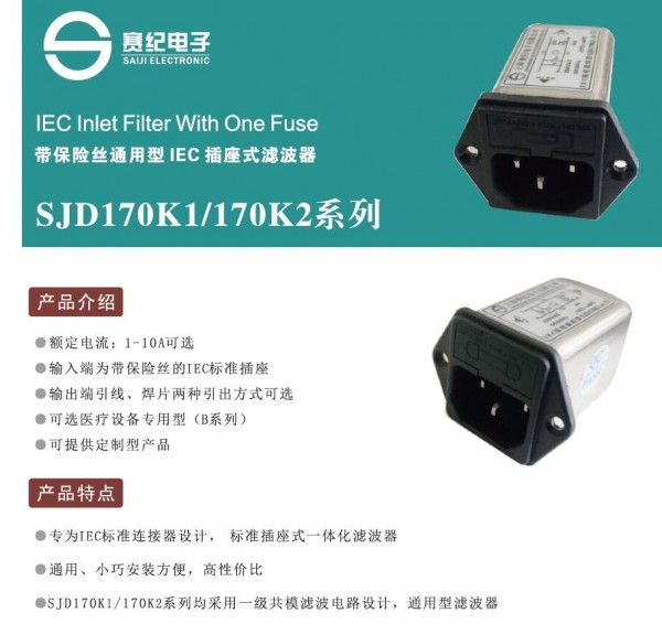 -- SJD170K1/170K2系列均采用一级共模滤波电路设计,通用型滤波器