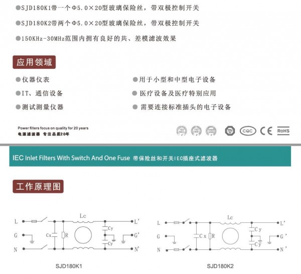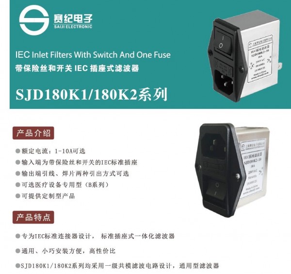 -- SJD180K1/180K2系列均采用一级共模滤波电路设计,通用型滤波器