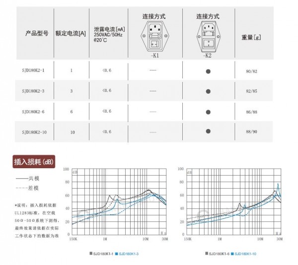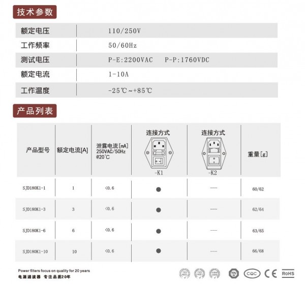 二、赛纪单相直流交流带保险丝和开关IEC插座滤波器SJD180K1 180K2特点和优势