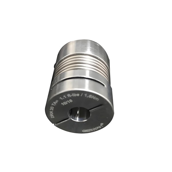 GERWAH联轴器根据联轴器结构,联轴器和动力输出轴(减速器轴)通过膨胀套筒传递传递动力, 动力输入轴由夹紧夹和传动夹和伸缩接头夹紧传递。紧端通过波纹管传递动力,波纹管通过胶合 连接到膨胀端和夹紧环。故障位置在夹环和波纹管中。 波纹管联轴器由两个轮毂和一个薄壁金属 管组成,它们通过焊接或粘接连接在一起。虽然有许多其他材料可供选择,但不锈钢和镍是常用 的金属管材料。镍管通过电沉积制成。该方法首先使用心轴上的电镀镍将固体心轴加工成波纹形 状,然后将心轴化学溶解以获得镍波纹管。该方法可以控制波纹管的壁厚,并且获得比通过其他 方法制造的波纹管更薄的壁厚。这种薄壁波纹管使联轴器具有高灵敏度和响应性,非常适合用于 极小和复杂的仪表应用。 波纹管联轴器不能滑动,这通常是由夹紧带,膨胀套管或波纹管接头的 失效引起的。失败的原因分析如下: 联轴器输入故障:夹紧螺钉损坏或松动,夹紧环结构损坏或 夹紧钳上的紧固螺纹损坏,使夹紧夹不能正常夹紧动力输入轴; 联轴器波纹管失效:波纹管结构 损坏,波纹管从夹紧接头或膨胀节脱胶,使波纹管不能正常传递动力; 连接结构的输入端为夹紧 环结构,夹紧螺钉产生预紧力,动力输入轴和夹紧环一体固定。输出端为膨胀结构,锥体由膨胀 螺丝预紧,膨胀套管膨胀,动力输出轴内孔配合,连接一体化。中间是波纹管结构,波纹管的两 端胶合并固定在输入和输出端。 夹紧时,用扭矩扳手按规定值拧紧夹紧螺钉,并通过夹紧环的变 形消除孔间隙,达到夹紧目的。从截面图可以看出,在夹紧过程中,由于存在两个预变形槽,截 面较弱,并且变形主要在两个预变形槽中。夹紧螺钉一侧的预变形槽具有小的横截面积,此时的 截面弱,端部具有八字形永久变形标记,表示夹紧状态下的应力很大,这大于超硬铝的屈服极限 。 联轴器输出故障:膨胀螺丝损坏或松动,膨胀套筒结构损坏或膨胀套管膨胀。膨胀套损坏不能 正确扩大动力输出轴。 夹紧环的径向加工中有两个预变形槽,槽宽约为2mm,夹紧螺钉的一端是 直径方向的通槽,深度方向与波纹管之间的连接未打开,横截面是斜面;另一个凹槽在径向方向上 没有打开,但是与波纹管的连接的纵向方向没有打开,并且该部分是斜面。 粘合剂上存在的应力 是失败的潜在危险。为了在夹紧联接夹具期间避免大的应力,通常在夹具上执行环形凹槽以释放 应力。 波纹管联轴器通过具有波纹形状的薄壁管(波纹管)直接焊接或粘接到两个半联轴器以传 递运动。该联轴器结构简单,体积小,加工安装方便,传动精度高,主要用于小功率精密机械和 控制机构,结构紧凑,传动精度高。