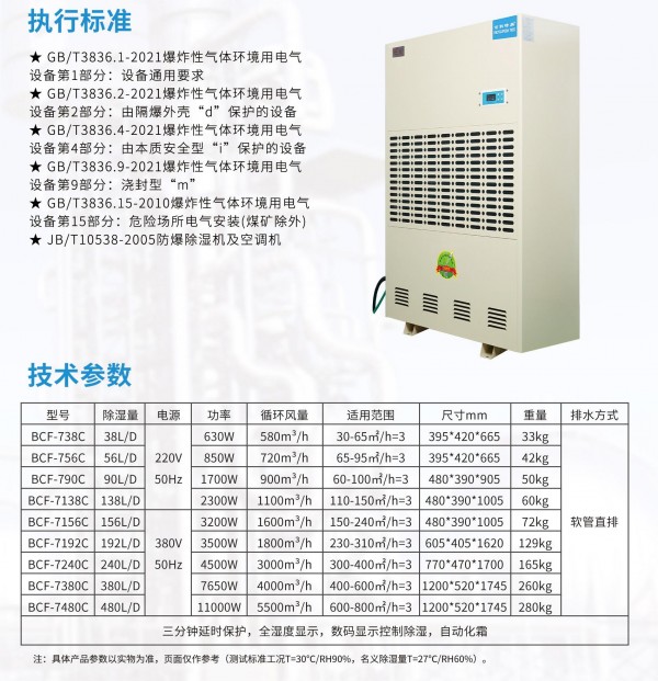 百科特奥38升除湿机,38升防爆除湿机BCF–738C,防爆空气抽湿机是一种高效、可靠、安全的除湿设备,能够有效地保障加气站的正常生产,提高加气站的运行效率和降低运营成本,是加气站自动除湿系统中的最佳选择。