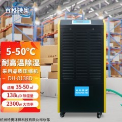 百科特奥高温除湿机,138升高温除湿机DH-8138D。一般情况下,不管是什么工厂或企业,只要将车间、仓库等环境的空气湿度控制在较为适宜的范围之内,对机械设备的正常运行、以及绝大数原材料和产品的生产、储存等诸多方面来说都是极为有利的。