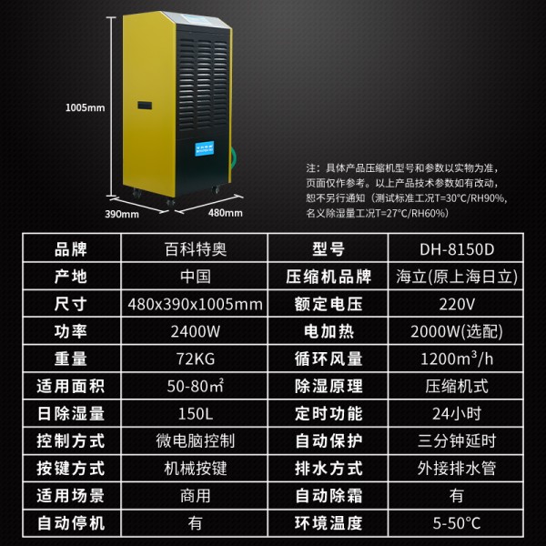 百科特奥150升除湿机,50度高温烘干房除湿机DH-8150D。