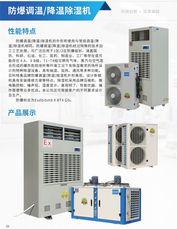百科特奥138升调温除湿机,防爆调温除湿机BCF-7138C。具有升温降温的同时,兼具抽湿防潮降低环境空气湿度的作用。风冷型调温除湿机,按;工作类型可分为风冷型和水冷型两种工作形式,可根据客户的实际需要选型。