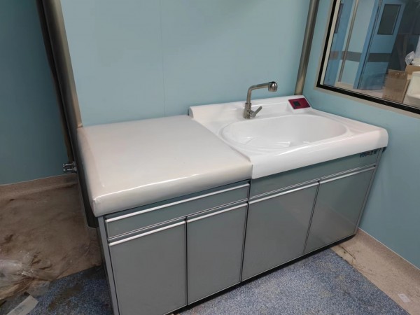 常见于妇幼院,医院产科,月子中心,母婴会所等,为刚出生的婴儿优良的洗浴环境。此产品为定制产品,需根据房间尺寸定制方案。宝宝洗浴由婴儿洗礼池,宝宝游泳池,护理平台,抚触软包台,洗手池等组成。洗礼池和游泳池,洗手池,护理平台,转角平台都采用面层为的A级PMMA高分子复合材料一体成型,表面细菌残留量远远低于不锈钢,人造石,陶瓷盆和其他普通塑料。宝宝洗澡池低部圆滑突起设计;给婴儿一防滑支撑点,防止宝宝在池内滑动,造成意外呛水。洗礼池配有大屏液晶中文触摸显示仪表和恒温控制器,显示仪表可显示室内温度及水龙头出水温度和高温自动断水功能;恒温控制器恒温出水控制(温度控制在38℃-40℃为佳),防止水温过高或过低给宝宝带来的惊吓和伤害,配套微电脑控制器同时具有高温断水保护功能。恒温控制系统:1、调温度±1℃;智能记忆水温,开水即用;控温,温差±1℃以内,冷水失供,自动断水,显示实时水温。特制的长颈抽拉式花洒沐浴水龙头,360度旋转,水柱和花洒互相切换。 游泳池配有大屏液晶中文触摸显示仪表,显示室内温度及水龙头出水温度和游泳时间显示。一键排水功能方便洗护人员操作。 宝宝洗浴专为0--6岁儿童设计,是一款柔软、安全、舒适、健康的产品。产品选用进口PMMA高分子复合材料,每个生产环节严格按照卫生部标准。